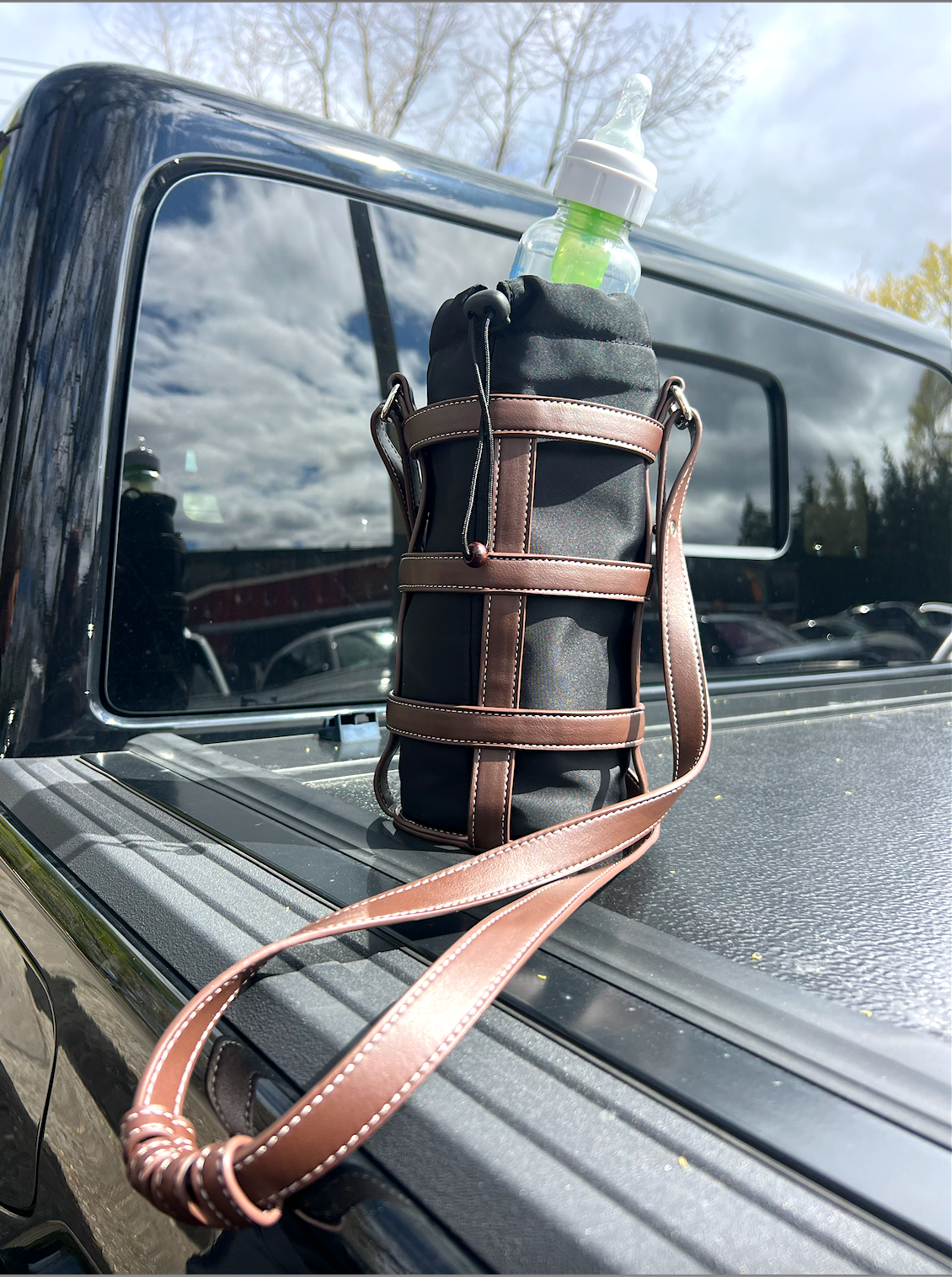 Crafted from buttery-soft vegan leather, this bag doesn’t just carry your bottle — it wears it like an accessory.
